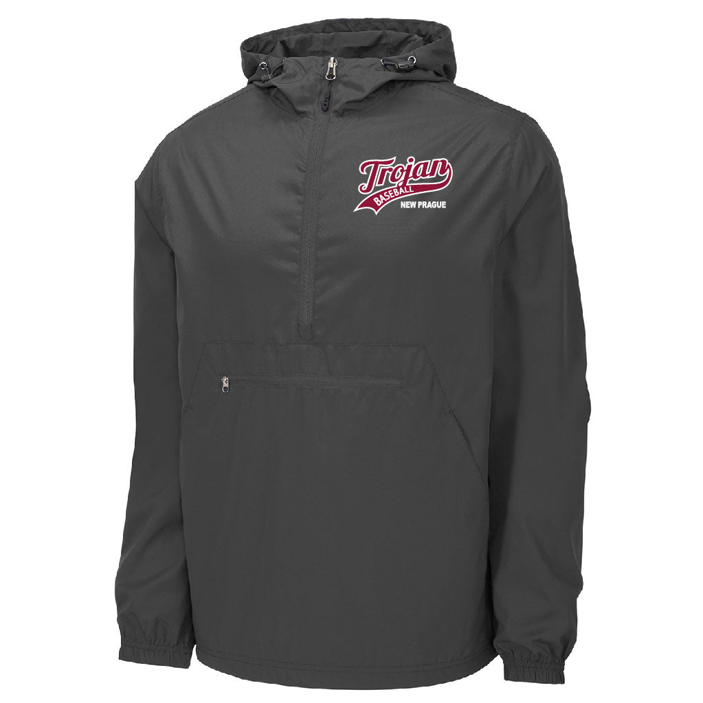 - Packs into front zippered pocket