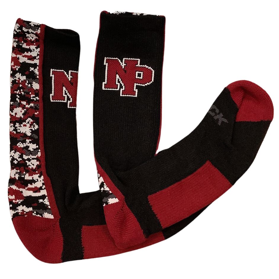 Black and Cardinal Digi Camo Socks with NP on front